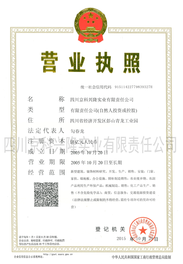 四川京科兴隆实业有限责任公司,法定代表人:勾春龙,公司注册资本伍亿元人民币,是经有关部门重点审批的高新技术企业和“重点高技术产业”。